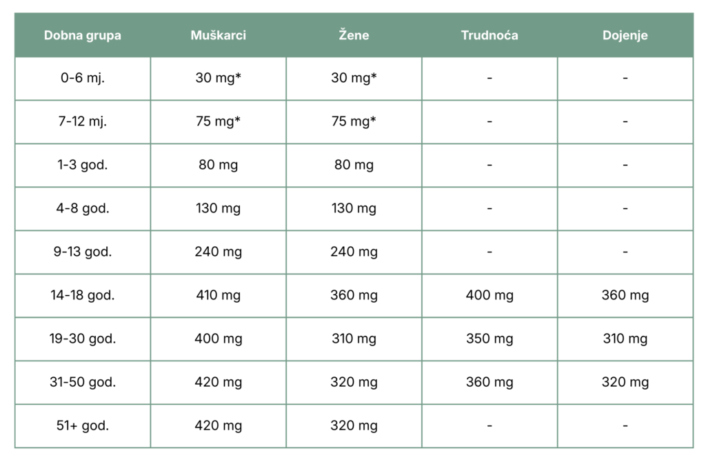 Tabela preporučenih dnevnih doza magnezijA